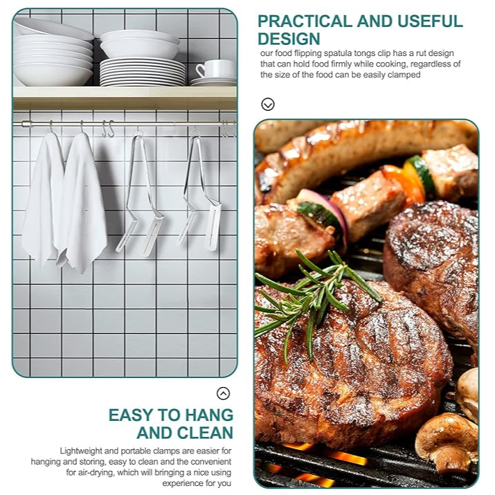 βοΈ Practicality:Β Stainless steel steak clips effectively stir meat fat, making it easier for flavor to absorb. This multifunctional spatula clip, with grooves, is suitable for flipping and frying food in oil. It is perfect for lifting, flipping, and transferring whole fish, hamburgers, eggs, fish fillets, meatloaf, seafood, cakes, and more, providing you with convenient handling.